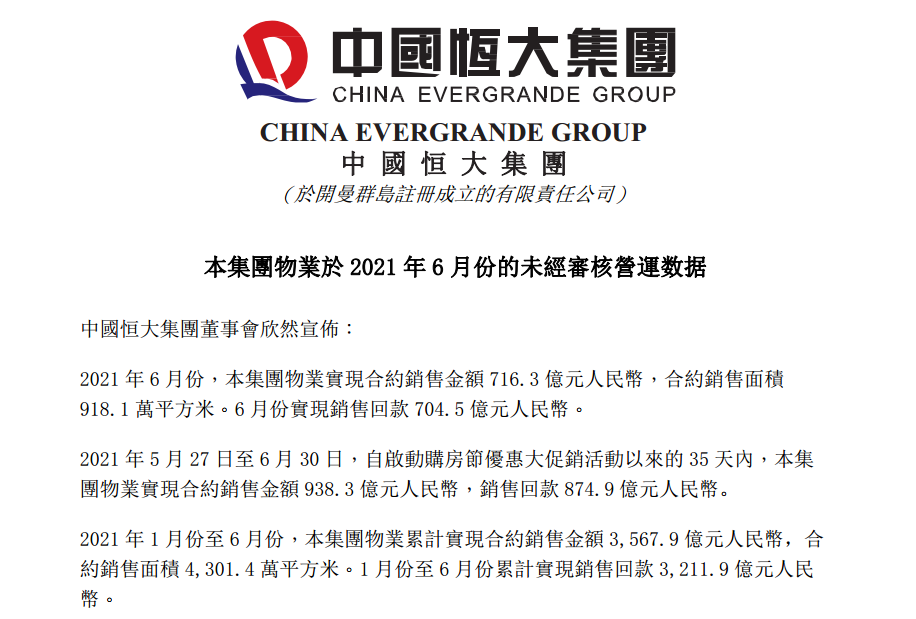 按照計劃,恒大2021年的銷售目標(biāo)為7500億元,以90%的回款率測算,恒大全年回款將高達6750億元。