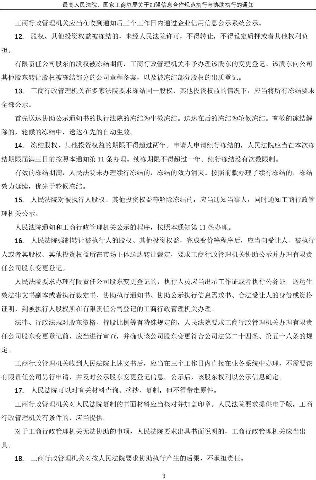 為了避免上述情況、拖延甚至阻礙法院強制執行的進程,《會議紀要》規定了人民法院送達協助文書后,市場監督管理機關不得受理被執行人或被執行人所投資的目標公司辦理出資比例變更、增資、擴股等業務申請以及公司登記機關變更的業務,協同人民法院共同扼殺被執行人逃避執行的可能性。