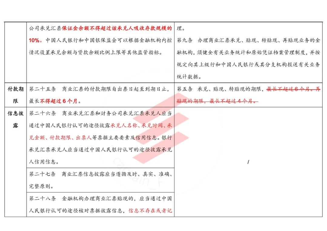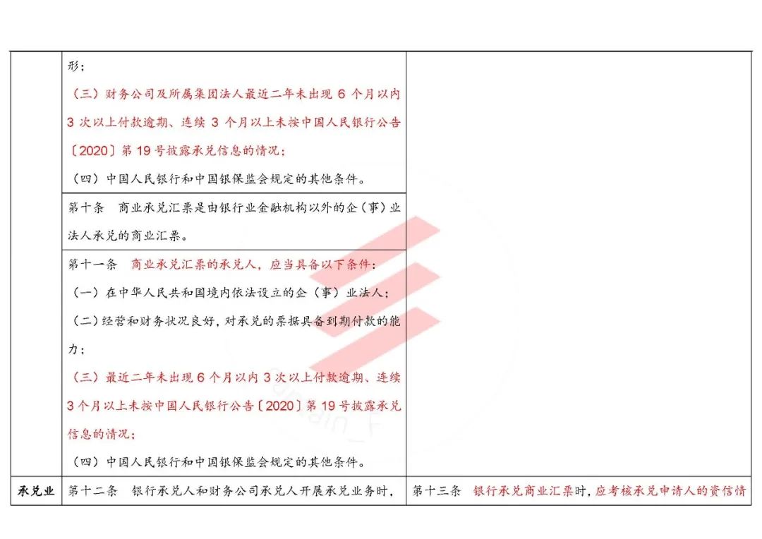 “第二十四條 銀行承兌匯票和財(cái)務(wù)公司承兌匯票的最高承兌余額不得超過該承兌人總資產(chǎn)的15%。銀行承兌匯票和財(cái)務(wù)公司承兌匯票保證金余額不得超過該承兌人吸收存款規(guī)模的10%。中國(guó)人民銀行和中國(guó)銀保監(jiān)會(huì)可以根據(jù)金融機(jī)構(gòu)內(nèi)控情況設(shè)置承兌余額與貸款余額比例上限等其他監(jiān)管指標(biāo)。”