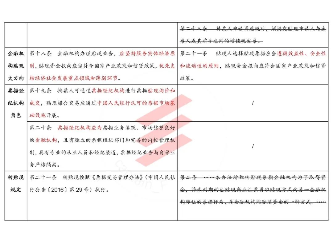 這里把原辦法“商品交易關(guān)系”,改為了與《票據(jù)法》相一致的“真實(shí)交易關(guān)系”,可謂是一個(gè)進(jìn)步。但關(guān)鍵是又提出了“能夠反映真實(shí)交易關(guān)系的材料”(原來(lái)1997年的文直接列舉了增值稅發(fā)票和商品交易合同復(fù)印件),實(shí)際上可能還提高了貼現(xiàn)機(jī)構(gòu)審查真實(shí)貿(mào)易背景的要求——其實(shí)后來(lái)的224號(hào)文之類的那套標(biāo)準(zhǔn)反而好用,因?yàn)楹苊鞔_,告訴你合同和發(fā)票看復(fù)印件就行啦、電子商務(wù)企業(yè)看電子訂單也可以啊。