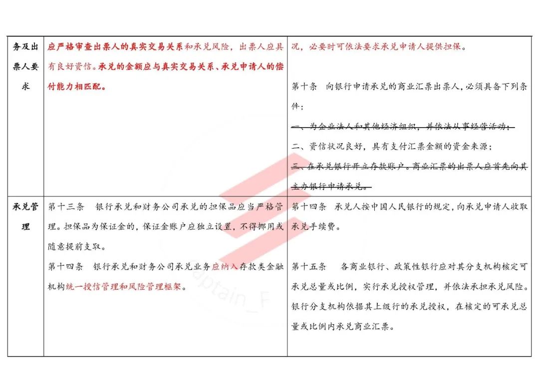 另外,細(xì)心的同學(xué)還發(fā)現(xiàn),第三十七條中,對(duì)于金融機(jī)構(gòu)為不具有真實(shí)交易關(guān)系的商票辦理貼現(xiàn),不再要求造成信貸資金損失,將直接面臨處罰。這意味著,融資票不復(fù)存在,金融機(jī)構(gòu)也不要幻想為了變相給核心企業(yè)放款,創(chuàng)造條件達(dá)到放款目的了。