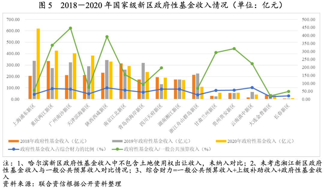 財政管理體制方面,國家級新區多建立獨立財政體制,財政獨立性、靈活性較強,財政配置資源的效率較高,為國家級新區開發建設投融資提供較大的便利性。但不同新區財稅分成和財政管理體制各有不同,反映出財政實力、財力支配靈活度及資金運作效率各有差異,中央及地方政府財稅支持政策不同,可獲取的上級政府支持力度亦有所不同。