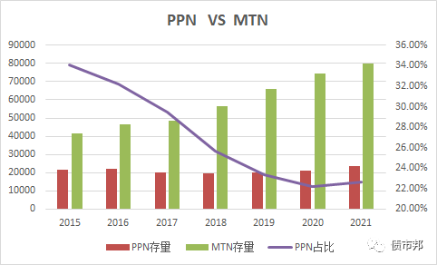 作為對比,交易商協會的私募品種定向工具PPN,在中長期限品種中的占比近年來一直處于下降的趨勢,規模穩定在2萬億左右的水平。