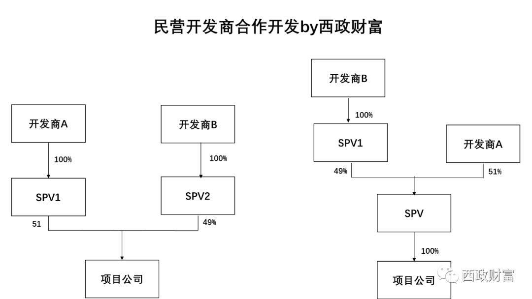 此外,開發(fā)商若存在合作開發(fā)的需求,我們建議開發(fā)商在拿地時(shí)即新設(shè)SPV作為競(jìng)拍主體,在拍得土地后由該SPV成立項(xiàng)目公司,為我們前融機(jī)構(gòu)從SPV層面介入融資進(jìn)行架構(gòu)設(shè)計(jì)預(yù)留空間。