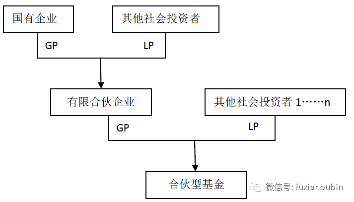 二是有限合伙企業(yè)模式。國有企業(yè)本身作為有限合伙人,投資設(shè)立有限合伙企業(yè),再由該企業(yè)作為普通合伙人發(fā)起設(shè)立合伙型基金,此模式有利于保護國有資產(chǎn)。此模式下,因該國有企業(yè)不能擔(dān)任有限合伙企業(yè)的執(zhí)行事務(wù)合伙人,因而對合伙型基金的管控不強。