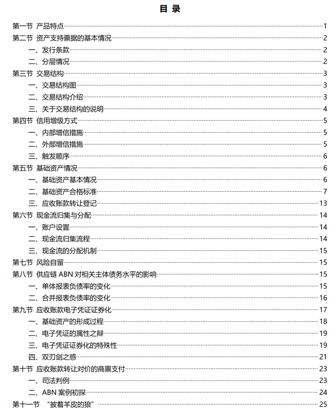 如前面所述,由于供應鏈ABN具有較強的類信用債特點,而優先/次級分層結構對于優先級證券的信用級別并沒有提升作用,因此,主要采用了平層結構或設計小比例的形式次級。