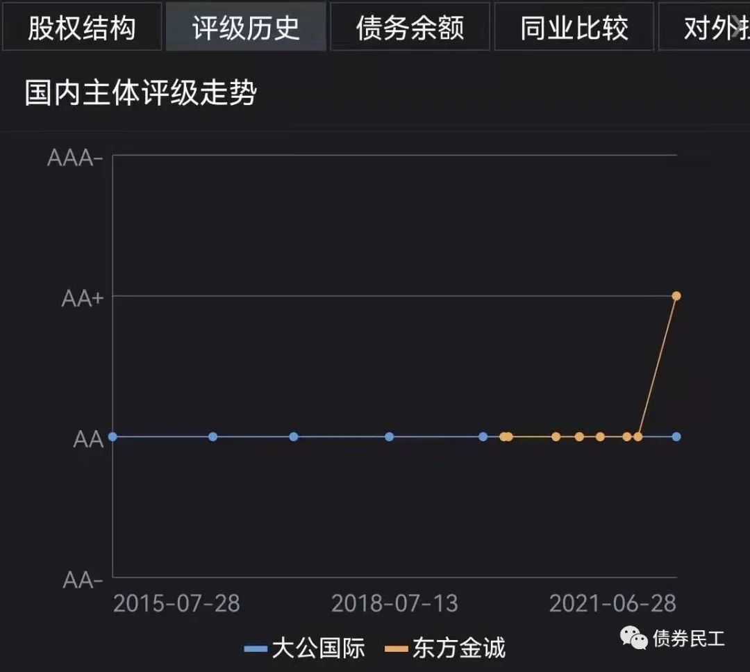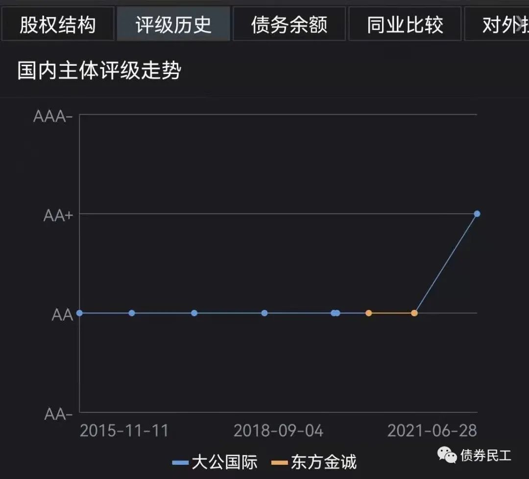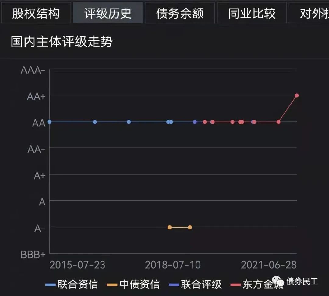 景德鎮(zhèn)陶文旅的實(shí)際控制人是景德鎮(zhèn)市國(guó)資委,主要是負(fù)責(zé)景德鎮(zhèn)市的基礎(chǔ)設(shè)施建設(shè)、保障房建設(shè)、國(guó)有資產(chǎn)經(jīng)營(yíng)、酒店住宿、餐飲等業(yè)務(wù)。景德鎮(zhèn)陶文旅于2020年取得了上市公司南京音飛儲(chǔ)存設(shè)備(集團(tuán))股份有限公司的控制權(quán)。同時(shí),景德鎮(zhèn)市政府將部分國(guó)有資產(chǎn)劃入了景德鎮(zhèn)陶文旅。景德鎮(zhèn)陶文旅的評(píng)級(jí)歷史如下圖,評(píng)級(jí)機(jī)構(gòu)包括聯(lián)合資信和東方金誠(chéng)。