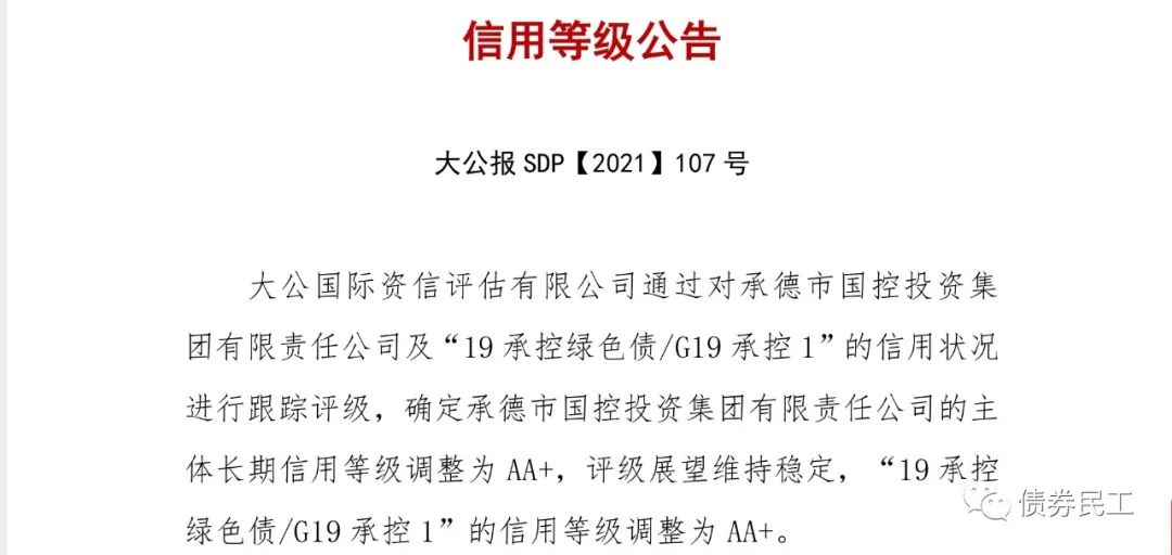 1、承德國(guó)控主體評(píng)級(jí)上調(diào)至AA+