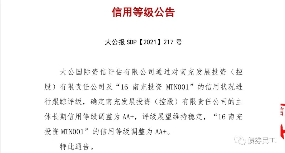 4、南充投資主體評(píng)級(jí)上調(diào)至AA+