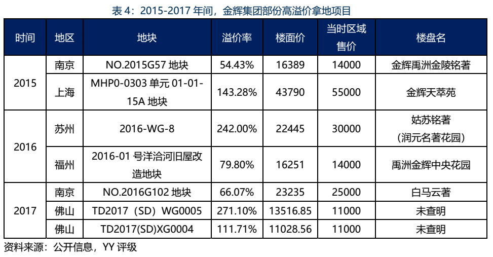 房地產(chǎn)牛市期間,15年至17年金輝集團(tuán)在各地高價(jià)拿地,或致使金輝即將面臨低毛利壓力;伴隨19年至20年房住不炒政策趨嚴(yán),房地產(chǎn)售價(jià)進(jìn)入漲幅緩慢的平臺(tái)期,疊加核心區(qū)域或純住宅土地成本攀升,金輝集團(tuán)又將面臨另一個(gè)利潤(rùn)壓縮的難題。