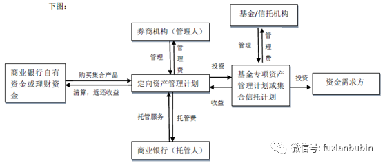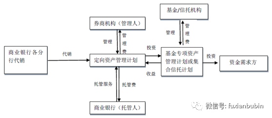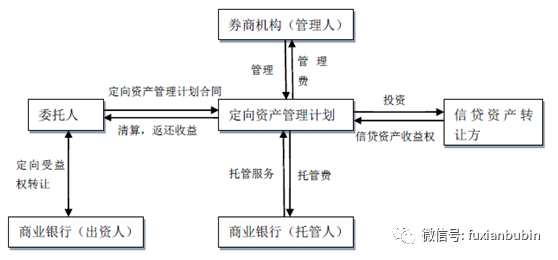 商業銀行理財資金或自有資金委托券商機構成立定向資產管理計劃,投資于存量信貸資產。業務原先主要是用于表內轉表外或調整信貸規模,業務流程如下圖: