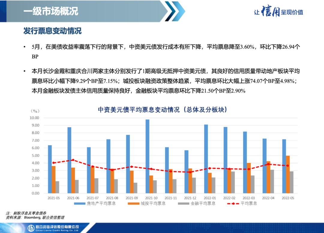 原標題: 【跨境債市研究】一級市場發行量再降,二級市場回報率繼續下探——中資美元債市場信息月報(2022年5月)