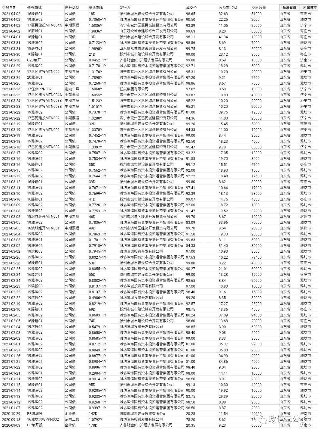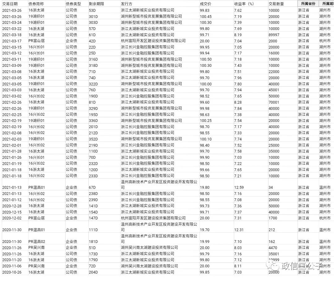 整理了一下過去半年內(nèi),到期日在2年以內(nèi)的二級市場收益高于8%的江浙魯城投的成交信息,分享給大家。