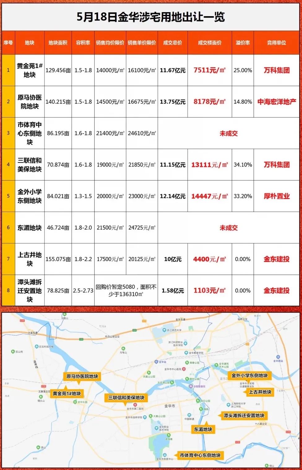 5月18日,金華第一批限價地塊完成集中出讓,其中2宗政府托底、2宗流拍、4宗成交