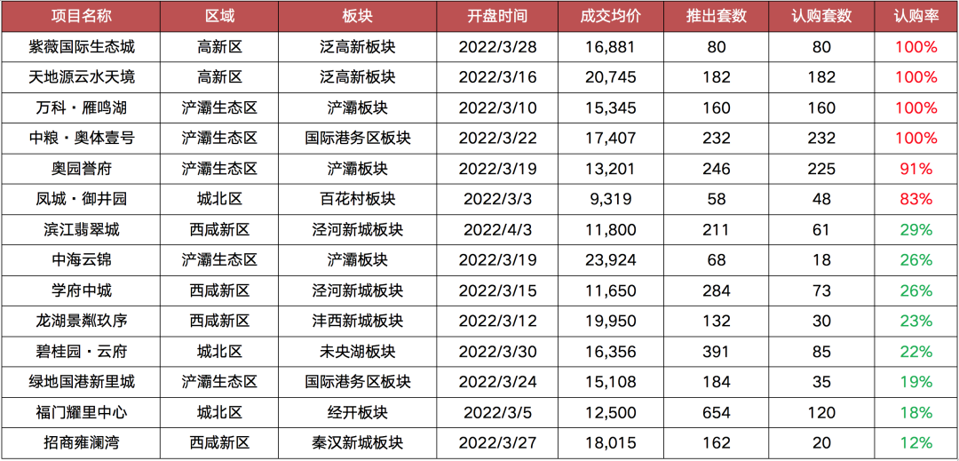 比如西安,受疫情影響,3月有23個項目首開或加推,主城區熱度顯著高于西咸新區,且兩個區域內部各項目之間分化差異也非常明顯。