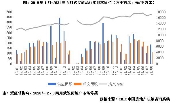 2021年上半年,武漢房地產市場明顯轉暖,供求顯著放量。1-6月,武漢商品住宅累計供應1086萬平方米,同比增長94%,較2019年同期增長20%;累計成交1172萬平方米,同比增長149%,較2019年同期增長33%。