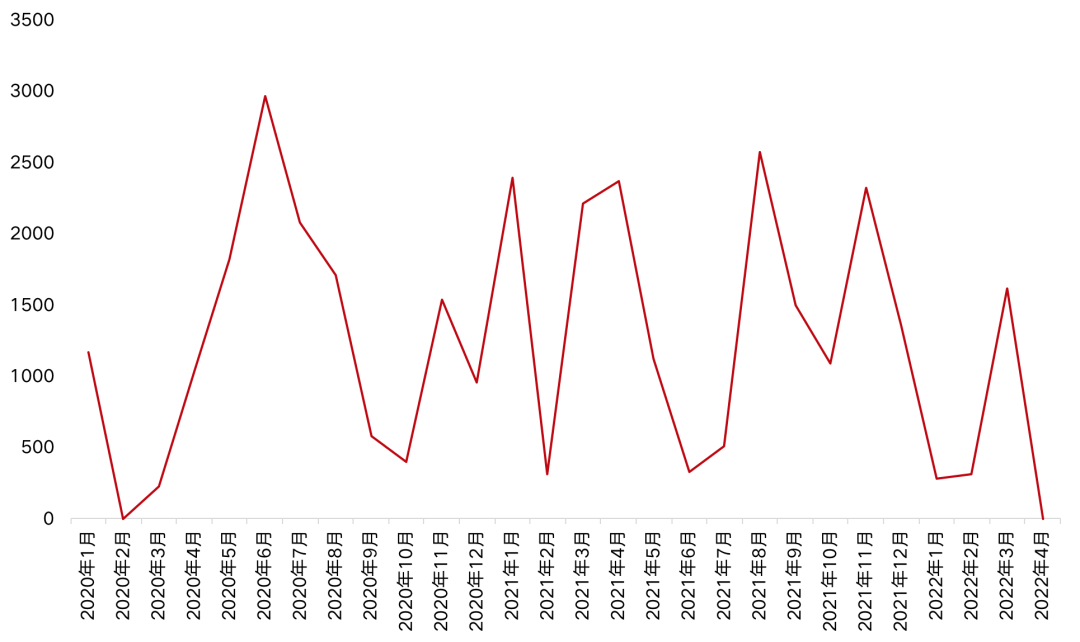 圖:2020.1-2022.4上海集中式公寓新增開業(yè)規(guī)模變化