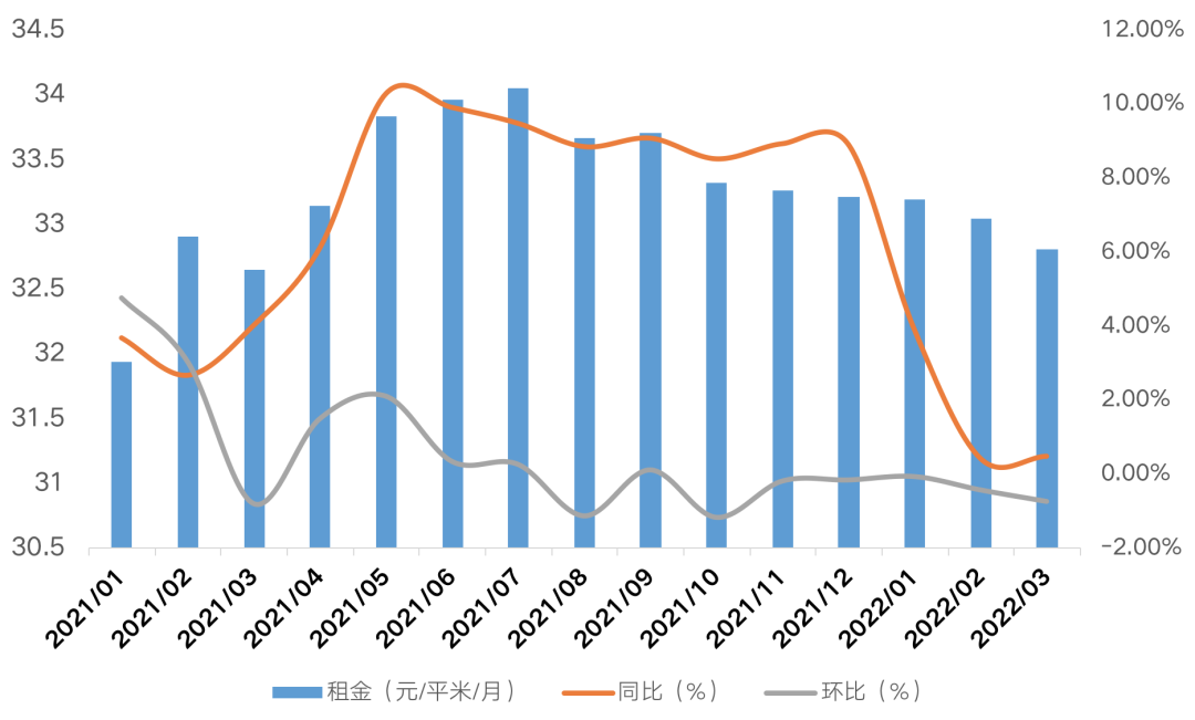 3-4月,由于部分城市疫情的突發(fā),多城封閉管理,也在一定程度上限制了租金的增長。