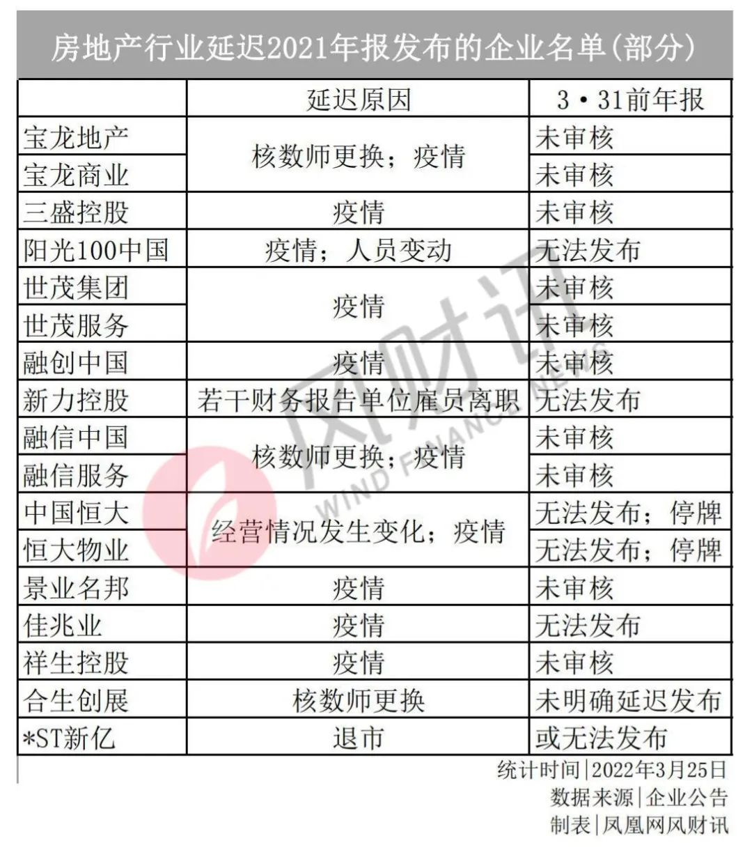 同日晚,三盛控股也公告推遲了年報發(fā)布(原定3月29日),原因則是疫情影響;陽光100中國則因疫情、人員變動等,推遲了原定3月31日的年報發(fā)布。