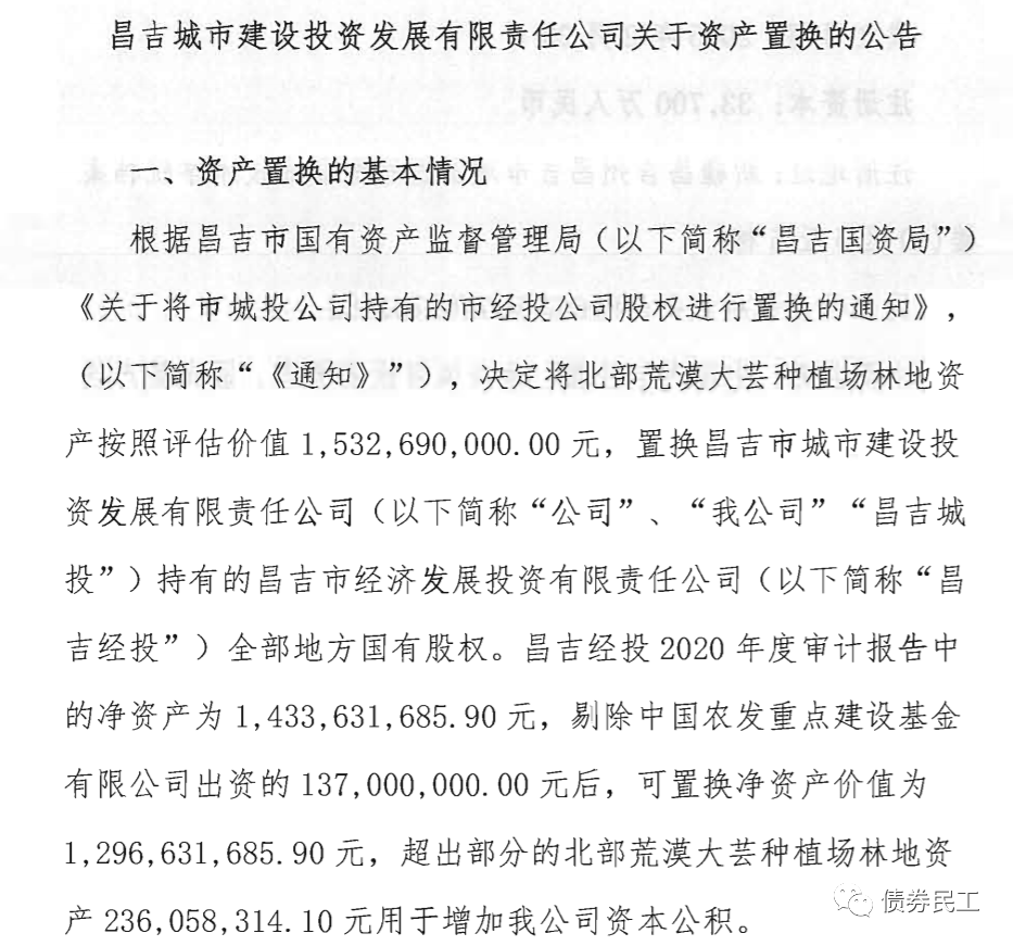 換公司的全資子公司昌吉市經濟發展投資有限責任公司的股