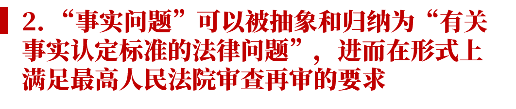 我認為,任何事實爭議均可以抽象為事實問題和法律問題兩個維度。換言之,任何事實爭議均有歸納出法律問題的空間。而這種抽象和歸納,正是在《審級改革試點辦法》生效后向最高人民法院申請再審的關鍵所在。
