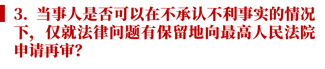 如果案件明顯符合這一標準,即案件爭議完全屬于對法律適用的不同理解,則也無需過多討論。本文希望討論的是,如果案件存在涉及主要事實問題的爭議,是否還有可能向最高人民法院提起再審?