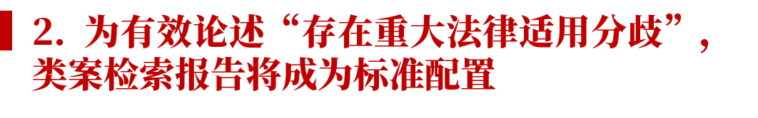 雖然理解與適用的措辭是“必要時”“還可以”附類案檢索報告,但為了論證存在“類案不同判”,類案檢索報告幾乎是必須配備的標準配置。和既往案件的類案檢索報告不同,這里需要向最高人民法院提交的類案檢索報告,不僅應報告對己方有利的案例,還應包括對己方不利的案例,這樣才能向最高人民法院展示實踐中存在的法律適用分歧。