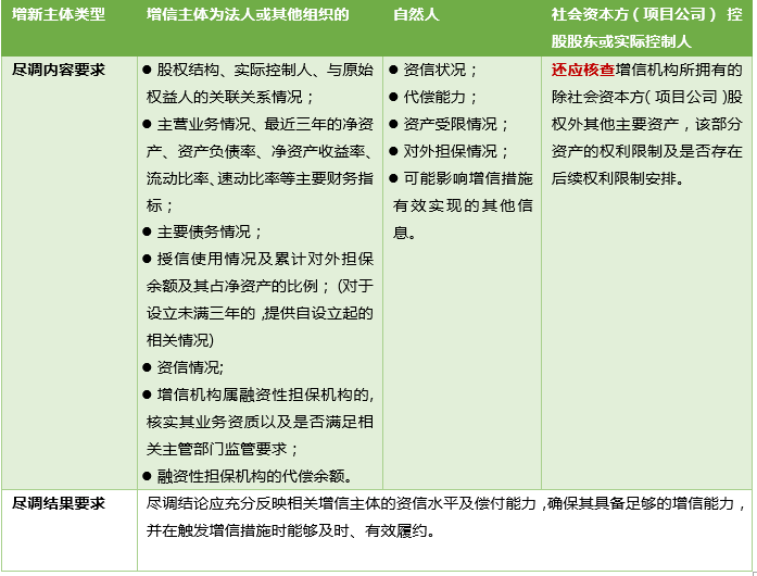 3、對增信主體(提供差額支付、 保證擔(dān)保、 流動性支持等)的盡職調(diào)查
