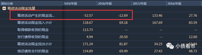 2018年以來,鴻坤地產(chǎn)籌資性現(xiàn)金流由凈流入轉(zhuǎn)為凈流出,2018和2019年該指標(biāo)分別為-12.69和-52.57億元,說明其償還大量債務(wù),融資規(guī)模遠(yuǎn)不及償還債務(wù)的速度。