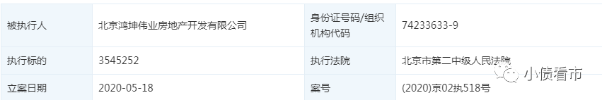歷史上,鴻坤地產(chǎn)已多次被列為被執(zhí)行人。今年5月,由于355萬元執(zhí)行標(biāo)的,其又被北京市第二中級人民法院列為被執(zhí)行人。