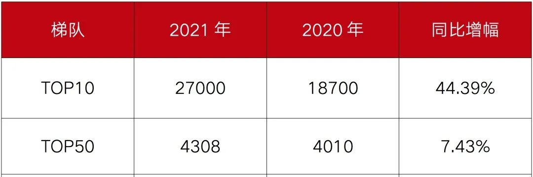 01 2021年物企TOP10門(mén)檻值同比上升44%