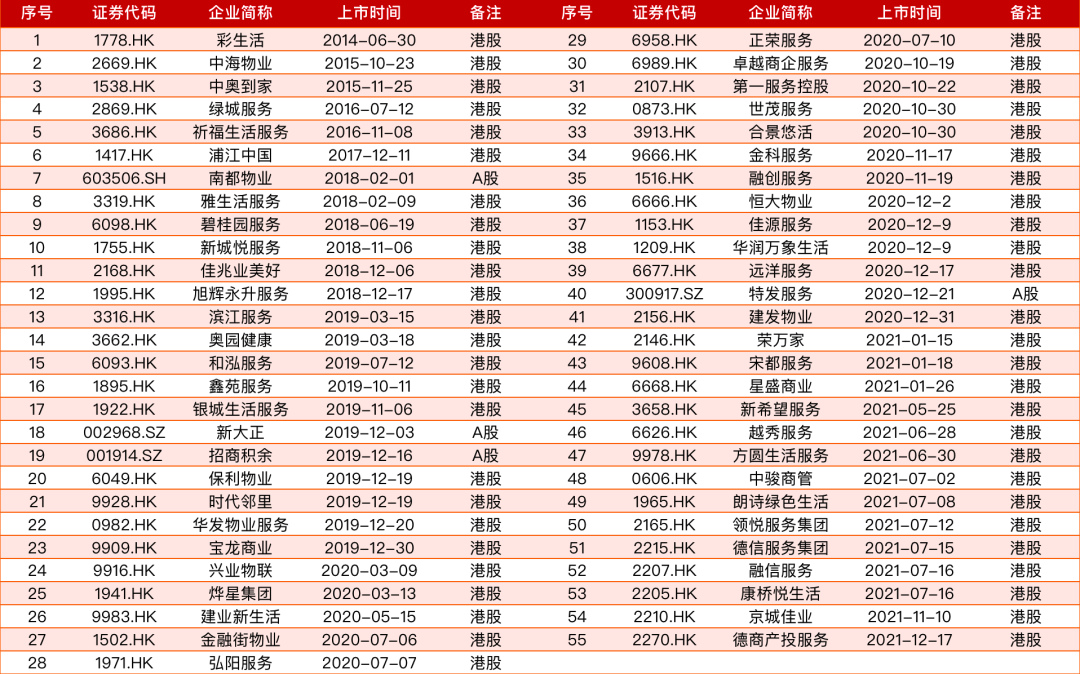 注:1、2019年12月16日,招商物業(yè)與中航物業(yè)重組上市,中航善達(dá)更名為招商積余;