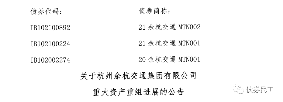 2021年11月4日,杭州余杭交通集團有限公司(以下簡稱“余杭交通”)公告公司進行重大資產重組的進展,將部分資產劃出公司,部分資產劃入公司,實現了重大資產重組。