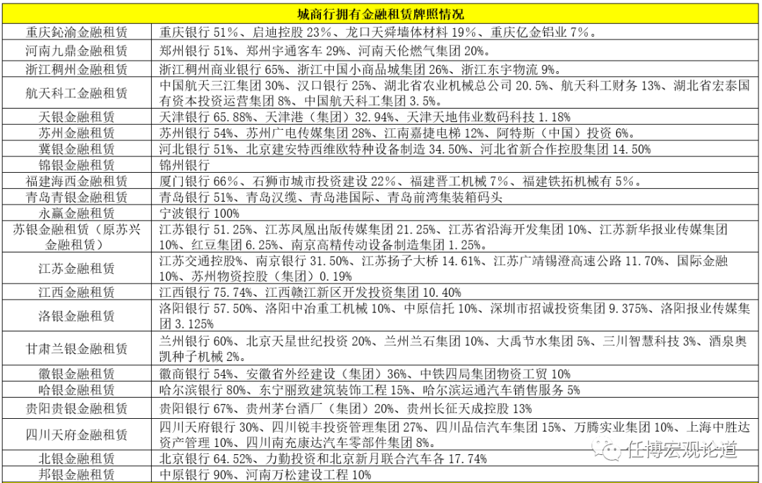 鑒于其它牌照獲取的難度,多數銀行基于政策的鼓勵將金融租賃和消費金融視為首要選擇。根據統計已設立金融租賃公司的城商行有22家,設立消費金融公司的城商行有11家。當然部分銀行也擁有其它并不常見的牌照,如徽商銀行參股奇瑞徽銀汽車金融、西安銀行參股設立比亞迪汽車金融等。