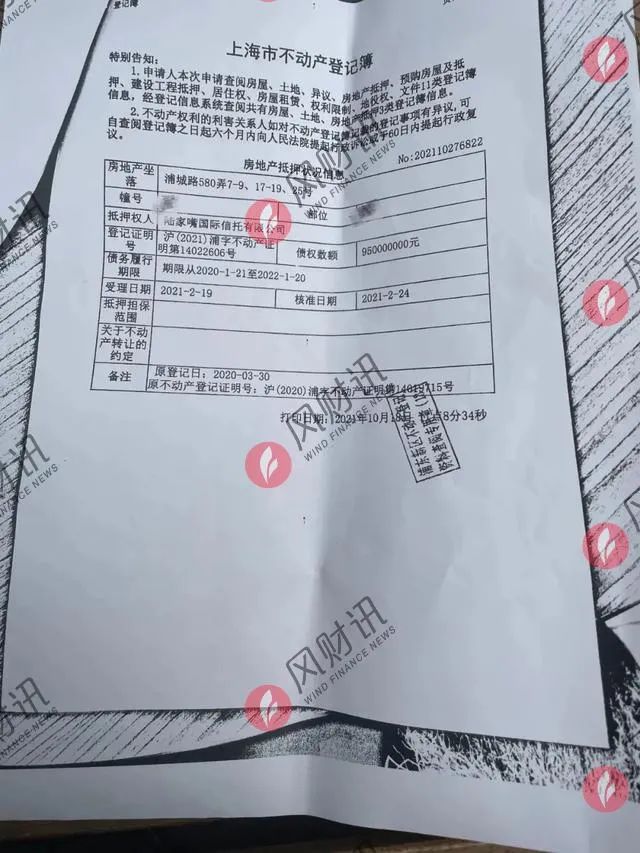 據(jù)購(gòu)房者提供的抵押合同復(fù)印件顯示,世茂和陸家嘴國(guó)際信托簽訂了一份債權(quán)數(shù)額9.5億元的房地產(chǎn)抵押合同,債務(wù)履行期限為2020年1月21日到2022年1月20日。