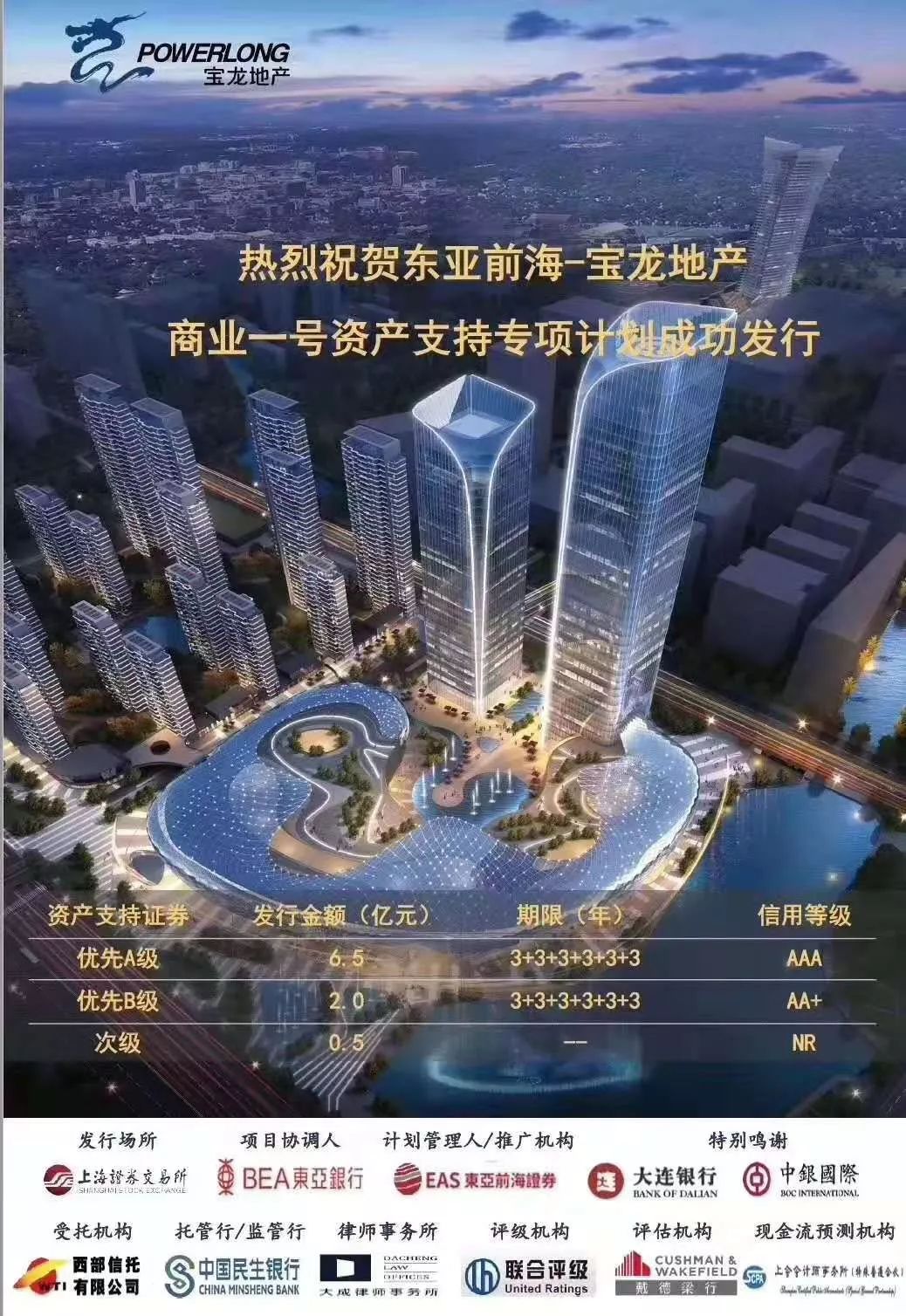 近日,由東亞前海證券擔任計劃管理人的“東亞前海-寶龍地產商業1號資產支持專項計劃”于上交所成功發行,規模9億元。