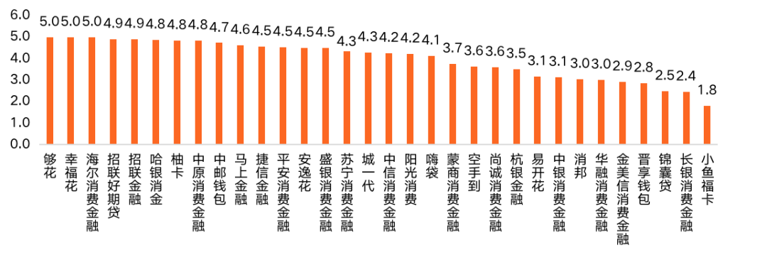 圖 5:2021年前三季度消費金融公司APP日均活躍用戶/月活躍用戶評分情況