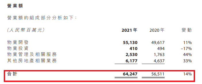 具體而言,物業開發業務,當然是最大收入來源,營業額約占總營業額的86%。