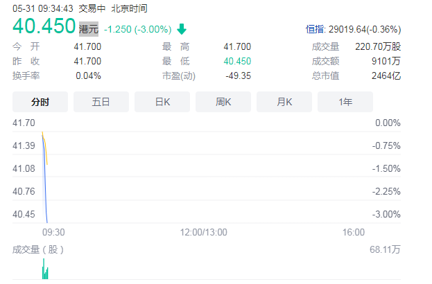 上市當(dāng)日,京東物流股價(jià)一度漲超18%,總市值超2800億港元。而在上市后首個(gè)交易日,京東物流開盤價(jià)格由上市當(dāng)日的41.700港元下降至40.450港元。