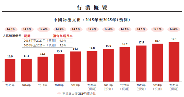 2020年~2025年一體化供應(yīng)鏈物流支出增長(zhǎng)率占比圖