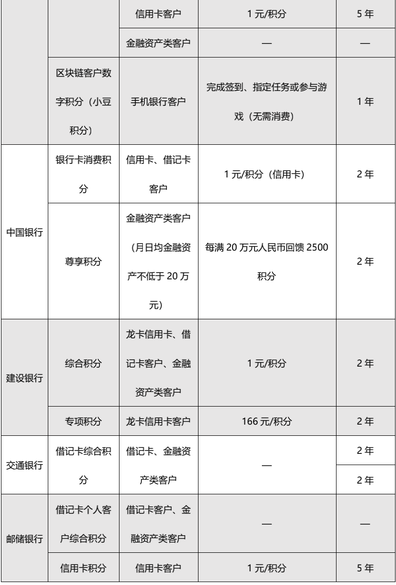 目前,在國有六大行中,交通銀行、郵儲銀行的借記卡積分和信用卡積分暫未合并。