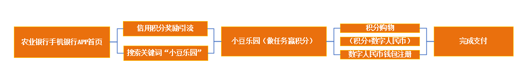 在行業整體技術基礎上,農業銀行基于區塊鏈技術的透明度、不可篡改性和參與者可訪問性等技術特征,推出數字積分項目 “小豆”, “小豆”類似Token,以小豆樂園的各類權益激勵客戶更多地體驗農行掌銀重點功能和服務。目前,“小豆”積分的價值也是通過權益兌換實現,其主要作用是將農行掌銀客戶轉化為數字人民幣錢包用戶,以及通過高頻營銷活動帶動農行掌銀月活。
