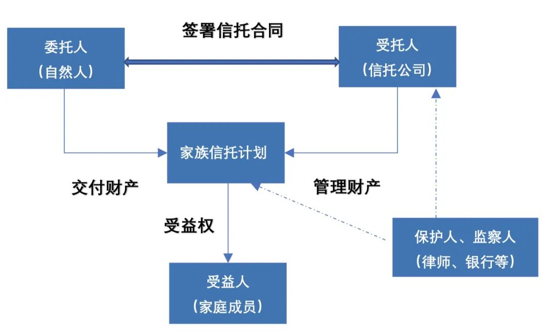 家族信托的基本法律關(guān)系與一般的資金信托沒有太大的區(qū)別。家族信托當(dāng)事人主要為委托人、受托人、受益人。
