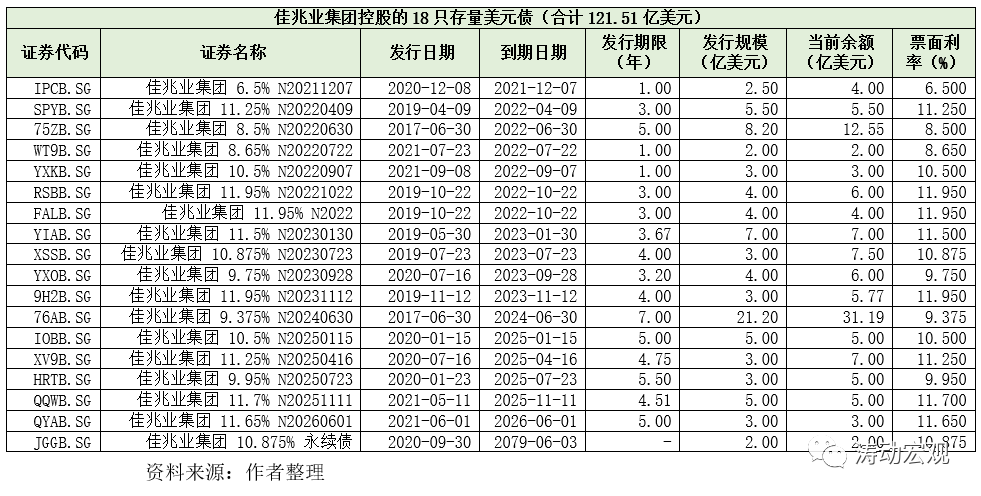 1、2021年10月28日,華人置業發布公告稱其在10月19日至28日期間已通過場外交易出售了本金總額為2.55億美元的佳兆業美元債,至此華人置業已經虧本拋售了其持有的三只佳兆業美元債,引發市場憂慮。