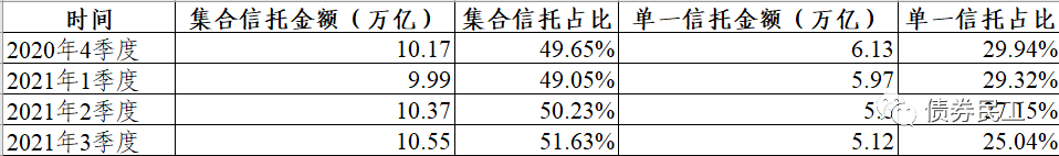 如果單純從信托產品的結構來看,投向信用債券的信托產品應該是包括了單一信托產品和集合信托產品,具體比例無法確定,但是集合信托產品的比重也可能一直在上升階段。