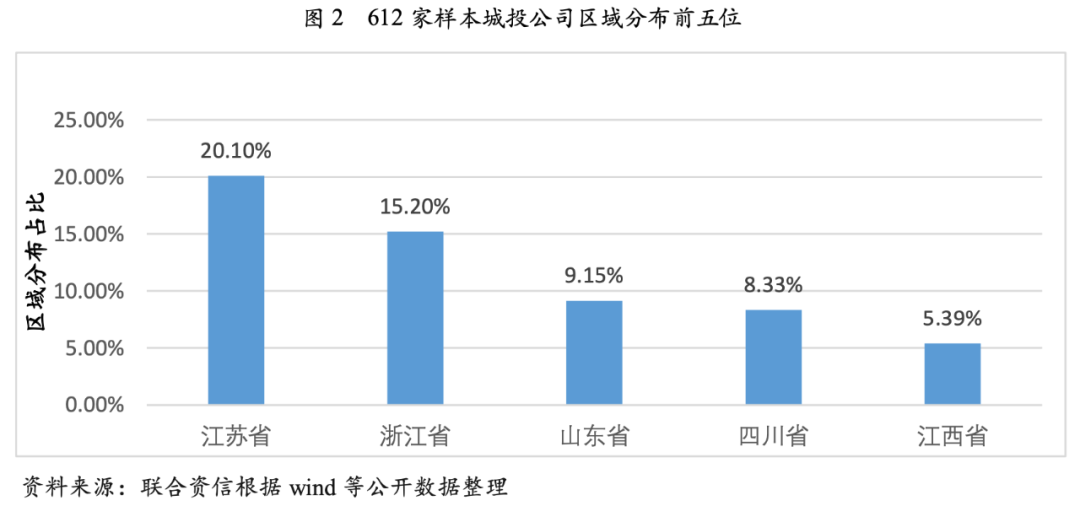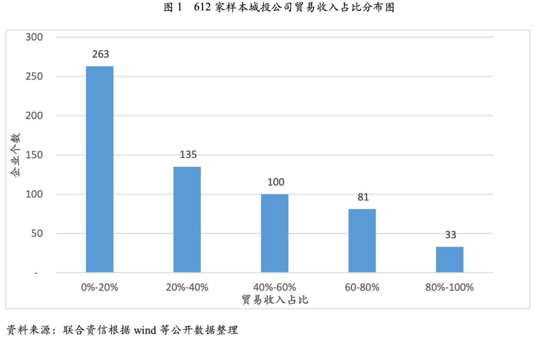 聯(lián)合資信以發(fā)債城投公司公布的2020年年報作為基礎(chǔ),按照主營業(yè)務(wù)中含有“貿(mào)易”、“產(chǎn)品”和“商品”三個關(guān)鍵詞作為篩選標準,共篩選出612家涉及貿(mào)易的城投發(fā)債平臺。