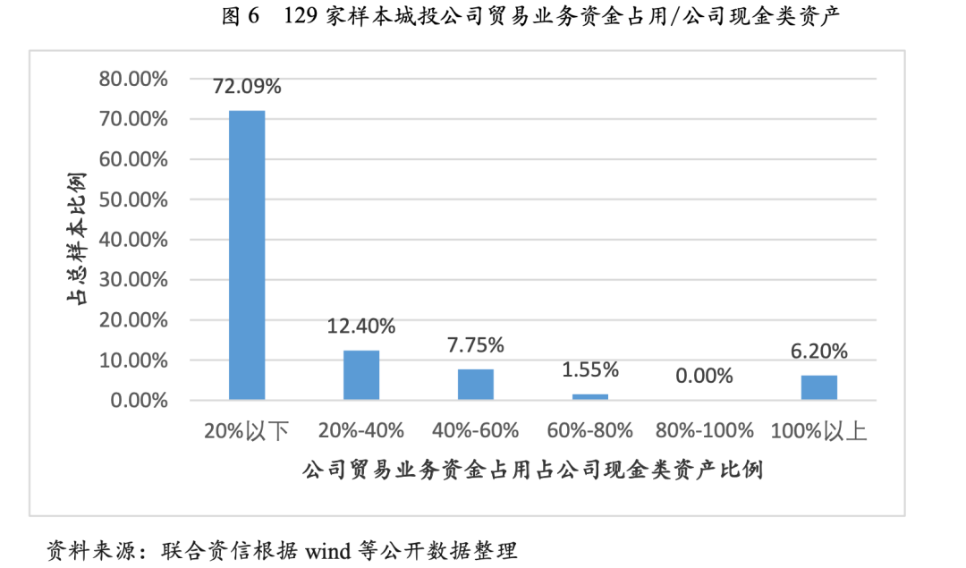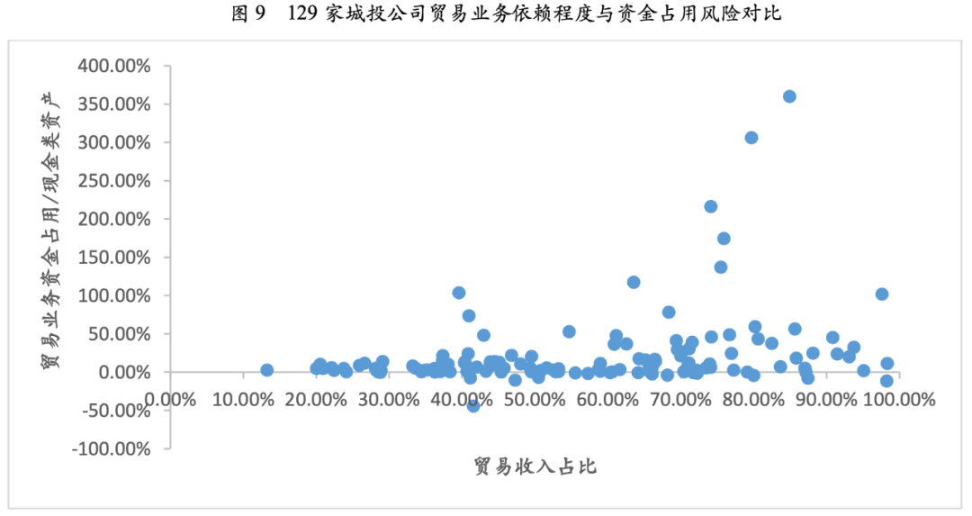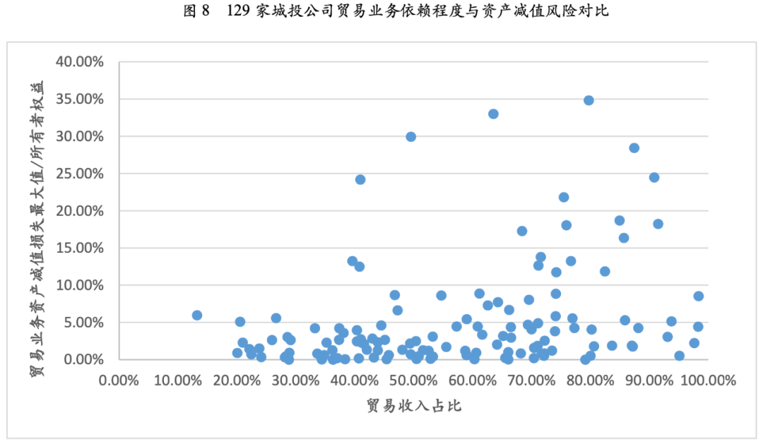 城投公司貿(mào)易業(yè)務(wù)資產(chǎn)減值損失風(fēng)險及資金占用風(fēng)險與公司貿(mào)易業(yè)務(wù)依賴度關(guān)系不大,或更多取決于公司貿(mào)易模式及結(jié)算模式。