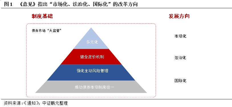 《意見》在制度統一的基礎上,明確了債券市場發展方向,從而實現境內外市場規模的擴大,充分發揮債券市場直接融資功能,提升企業債券融資的可能性和便利度。除上文分析的建立在法治基礎上的制度完善外,《意見》還強調建立多層次的債券市場,為投資者提供符合其需求的融資服務,以及推動債券市場對外開放,加快與國際市場的接軌。