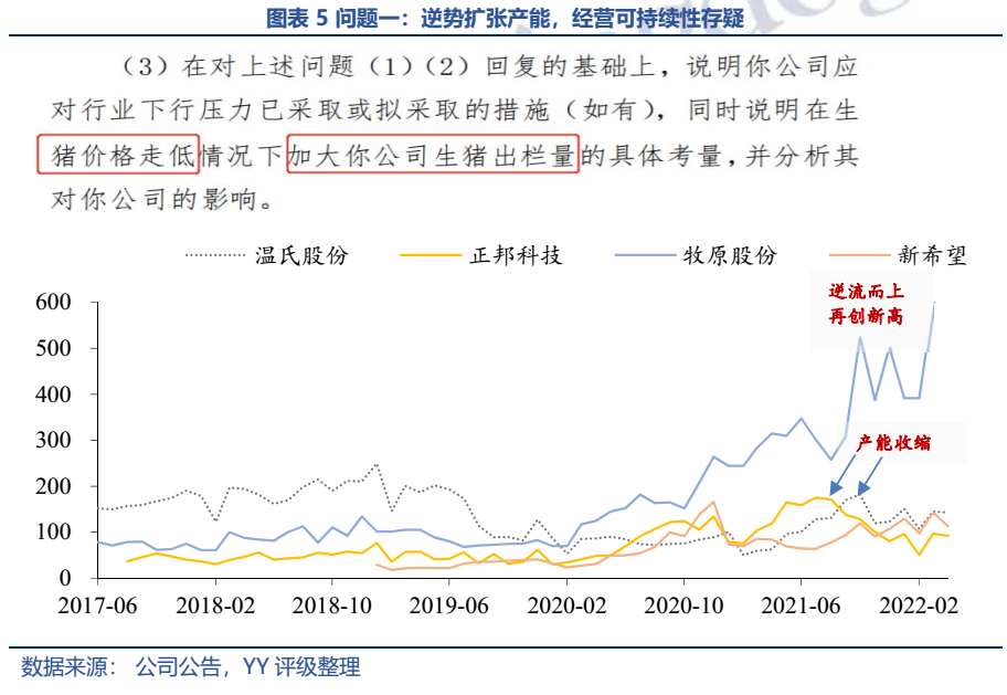 01出欄逆周期而上:21-22年豬肉價格下行大勢之下,同行紛紛縮減產能、減小損失,而公司逆勢加大產能,這種經營戰略、產能投放決策是否出現失誤?