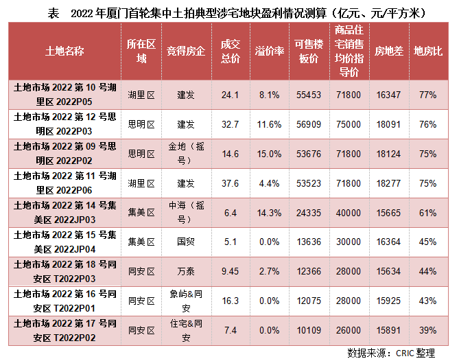 廈門首輪供地“誠意滿滿”,島內地塊均溢價成交